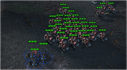 Egy csapat zergling az, ami mindig van ZvT-ben (de Roachok is jó, ha fejlesztve van a gyorsaság) Ezeket „belógatod a mélyvízbe” azaz zavarod az ellenség seregét, oda kapsz nekik, amíg be nem kapják a csalit. Látja, hogy a te egységeid nem képes elbánni az övével, és ha még fal felé vagy egyéb akadály felé is futsz, arra gondolhat, hogy nem menekülhetsz. Így tudod szépen rávezetni őket az aknára. Ha nem követ, nincs gond, nem vesztettél semmit.