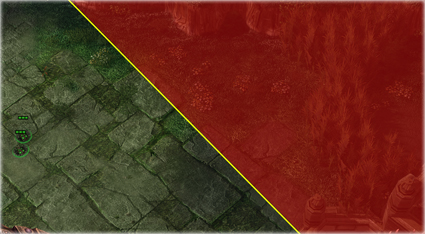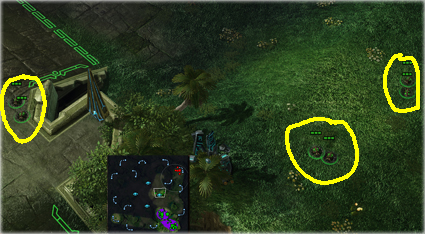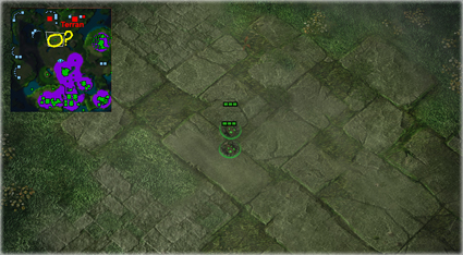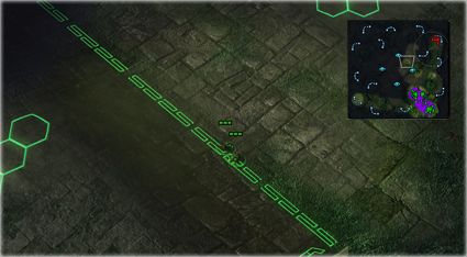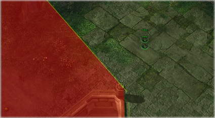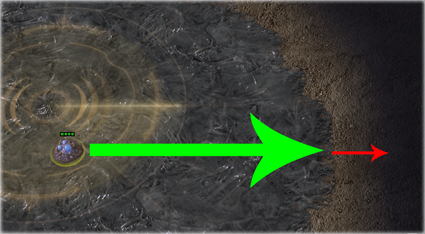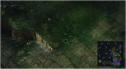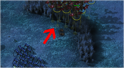 Ez a pozíció úgy tűnik, megtöri a fenti szabályt, de ha jobban megnézzük a lenti képeket, ezt a területet két oldalról akadály veszi körbe: az aranybánya és a bemélyedés között nem mennek az egységek, mert így jön ki a legrövidebb útvonal, csakúgy, mint az erdős terület felé sem fogja irányítani az Ai a sereget. Így kapunk egy láthatatlan folyosót, amerre elég gyakori lehet a forgalom. a legrövidebb útvonal szabálya miatt.