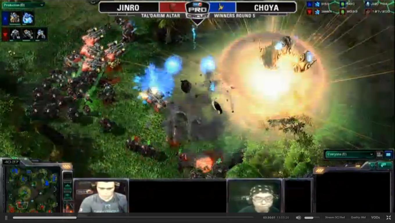 Jinro és Choya epikus meccset játszottak Tal’Darim Altar-on. A 40 perc alatt megszámlálhatatlan EMP, storm, drop és maxolt sereg összecsapások voltak. A meccset végül Jinro Atomja döntötte el, aminek sikerült Choya seregén landolnia, egy óriási összecsapás közepén. Choya azonban megnyerte a következő két meccset, így Jinro is a vesztes csoportban kötött ki.
