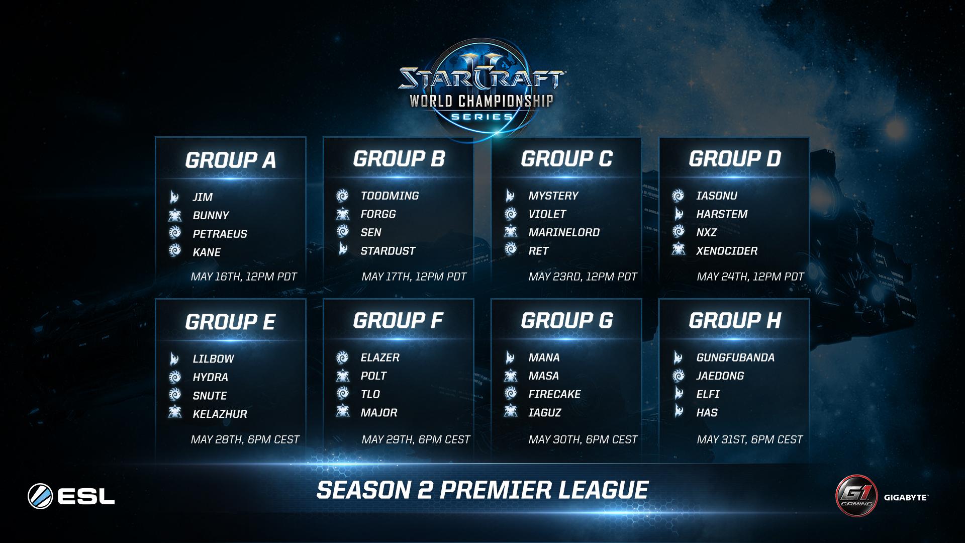 Ma este 21:00-kor kezdődik a 2015-ös WCS 2. szezonjának Premier Ligája. Mint az a fenti kép alapján is sejthető az A-D csoport az ESL burbank-i stúdiójából lesz közvetítve, míg az E-H csoport az ESL kölni stúdiójából. A visszajátszások az ESL YouTube csatornáján lesznek elérhetőek, illetve a Teamliquid fórumán összegyűjtik a VOD-ok linkjeit spoiler mentesen.