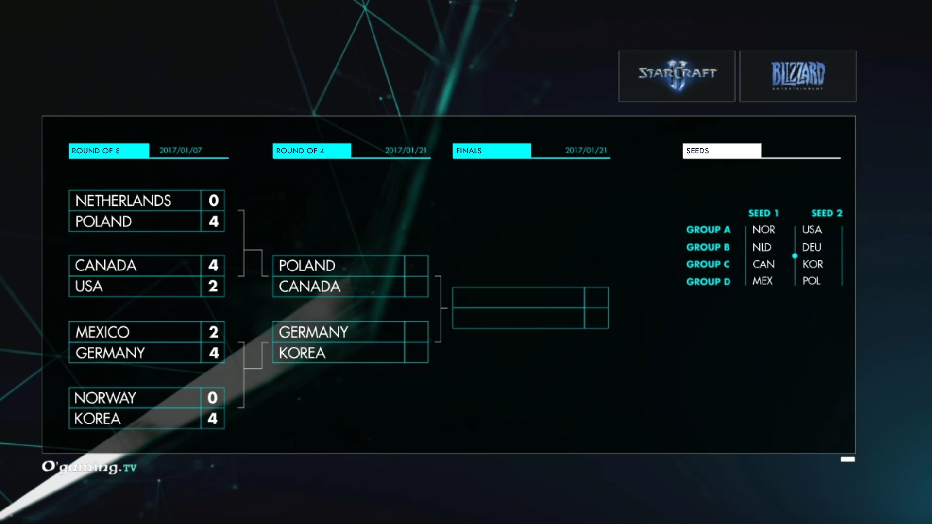 Ma 16:00-kor kiderül, hogy a francia O’Gaming TV Nation Wars IV nevet viselő csapatversenyén melyik ország tudja megszerezni a bajnoki címet. A közvetítés az elődöntőkkel kezdődik: Kanada vs Lengyelország és Németország vs Dél-Korea, majd egyből a döntő következik. A csapatoknak a győzelemhez 4 mérkőzést kell nyerniük, és mivel minden csapat 3 játékosból áll, ezért egy játékos kétszer is versenybe szállhat. Az eredményeket a bajnokság Liquipedia oldalán tudjátok megtekinteni, az élő közvetítést pedig az alábbi stream-en: