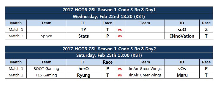 Ma 5:00-kor folytatódik Dél-Korea első és egyetlen StarCraft II premier bajnoksága a Global StarCraft II League (GSL) Code S. A versenyben a 6 megmaradt játékos küzdhet meg a több, mint 140 000 dollár összdíjazásért és a 2017-es WCS Korea pontokért. A játékosok teljes listáját, és a teljes időbeosztást az olvass tovább linkre kattintva láthatjátok. A bajnokság elérkezett az egyenes kieséses szakaszhoz, ahol 3 győzelem szükséges a továbbjutáshoz. A negyeddöntő mérkőzéseinek közvetítésére ezen a héten kerül sor ma 10:30-tól, és szombaton 5:00-tól.