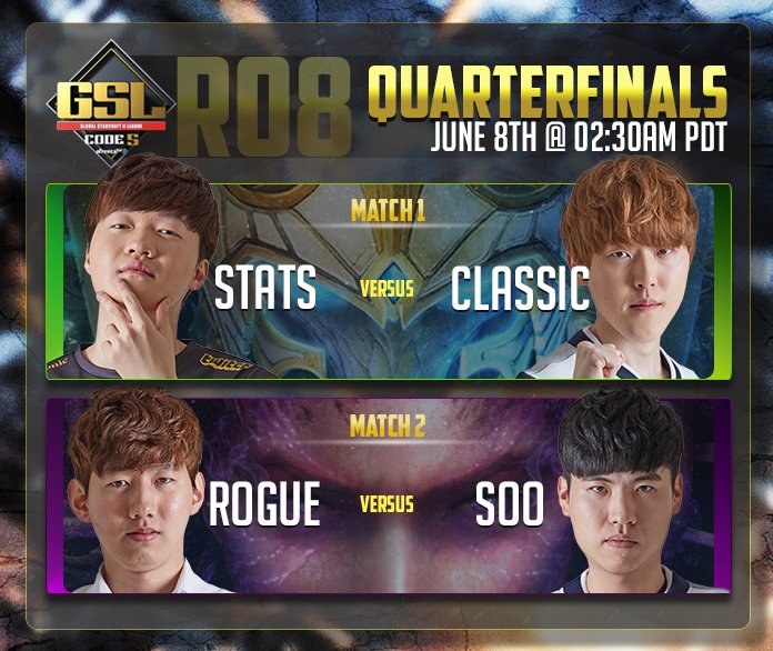 Ma 11:30-kor folytatódik Dél-Korea legrégibb StarCraft II premier bajnoksága a Global StarCraft II League (GSL) Code S. A versenyben a megmaradt 6 játékos küzdhet meg a több, mint 150 000 dollár összdíjazásért és a 25 000 WCS Korea pontért. A negyeddöntőben a továbbjutáshoz három győzelem szükséges.