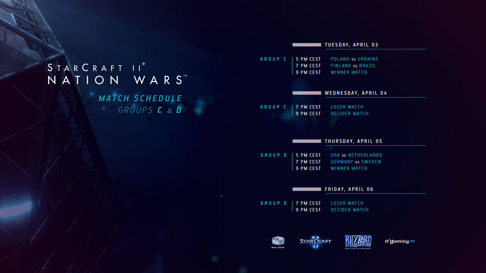 Ma 17:00-tól folytatódik a francia O’Gaming TV Nation Wars nevet viselő csapatversenye, melyben az induló országok, közönség által kiválasztott játékosai küzdenek meg a bajnoki címért. A csoportkör C és D csoportjának közvetítéseire a fenti képen látható időpontokban kerül sor. A bajnokság pedig április 22-ig tart.